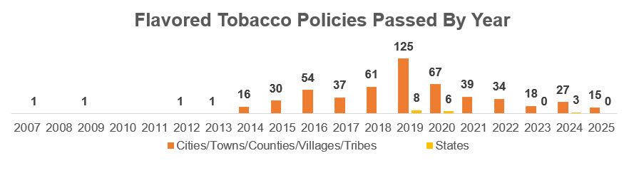 Sales restrictions on all flavored tobacco products, including all types of menthol products, are gaining momentum at the local and state level. As of September 30, 2025, 422 jurisdictions and three Native American tribes have placed some type of restriction on the sale of flavored tobacco products, and of those, 162 have fully comprehensive policies that prohibit sales of all types of flavors across all products, including menthol/mint/wintergreen flavors that are sometimes exempted from flavor policies, at all retailers.