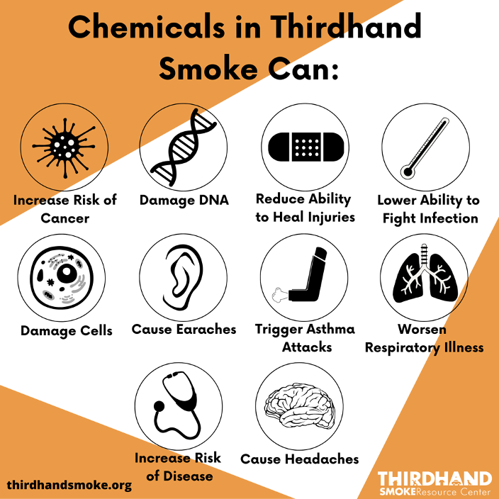 Thirdhand smoke refers to the toxic residues left behind when tobacco smoke or vaping aerosols settle on surfaces, dust, and building materials. These pollutants–many classified under California’s Proposition 65 as carcinogens or reproductive toxins–can persist for years and pose particular risks to children, the elderly, and immunocompromised individuals.